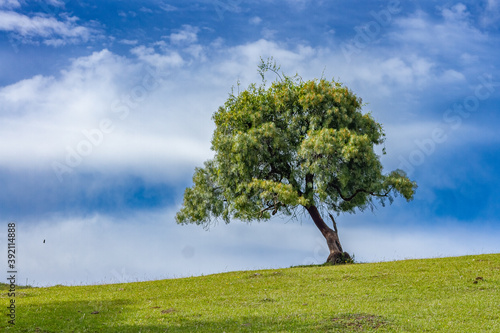 Obraz premium Single tree at the top of the hill and clouds in the background