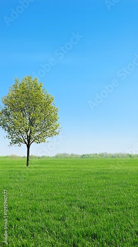 © Soto, Fototapeta premium Single Tree in a Green Field Under a Blue Sky