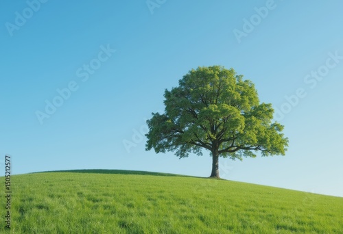 Fototapeta premium Single tree on a green hill under a clear blue sky