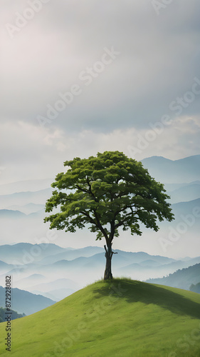 © LooPanda-Pictures, Obraz premium single tree on grass hill