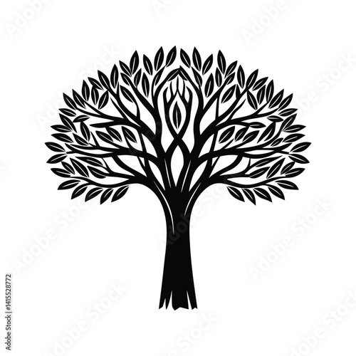 © InsidePhotoshop, Obraz premium Single trunk tree icon silhouette vector with white background