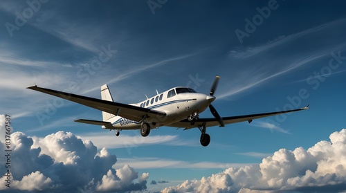 © Zartasha, Fototapeta premium Single turboprop aircraft small private plane flying.generative.ai