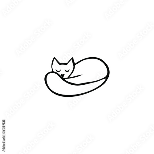 © Анастасия, Fototapeta premium Single vector doodle element isolated on white background. Sleeping cat