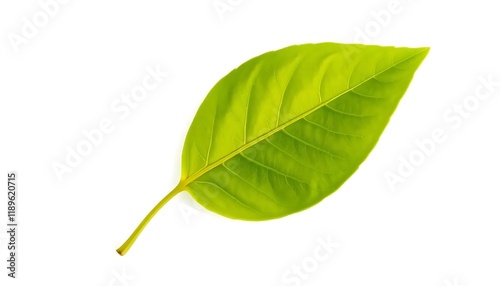© faturlp24, Obraz premium Single Vibrant Green Leaf: A Close-Up Botanical Study