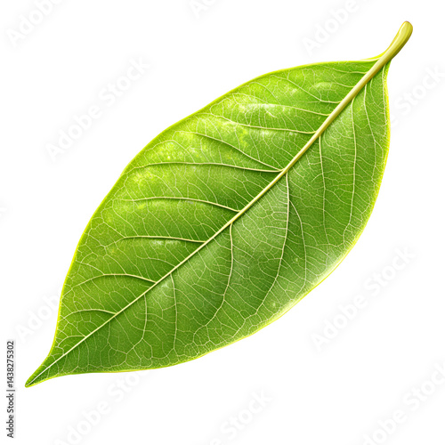 © Abuhumed, Obraz premium Single vibrant green leaf closeup