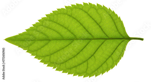 © Mustika, Fototapeta premium Single vibrant green leaf detailed view 14.