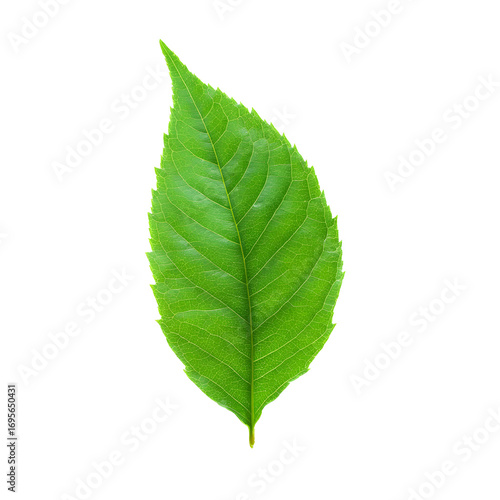 © ahmad musiyam, Obraz premium Single vibrant green leaf isolated on a stark black background creating contrast