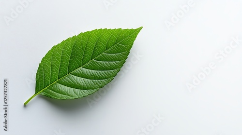 Fototapeta premium Single Vibrant Green Leaf On White Background