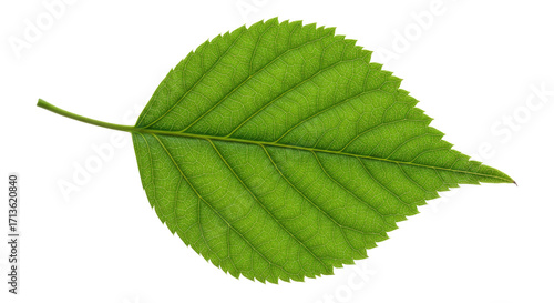 © Mustika, Fototapeta premium Single vibrant green leaf with serrated edges 3.