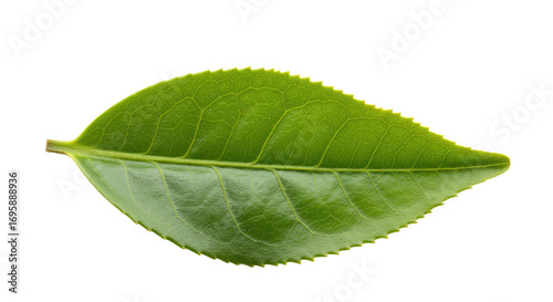 Fototapeta premium Single vibrant green tea leaf close up.