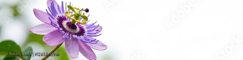 Naklejka premium Single violet passionflower, intricate details, pure white backdrop, elegant, bloom, blossom