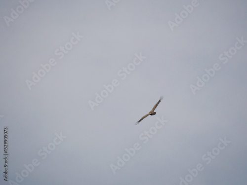 © AE & mekke, Fototapeta premium single vulture flying in cloudy sky with wings wide open