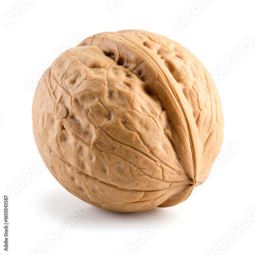 Obraz premium Single walnut, whole, isolated, light brown