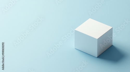 © matoya, Fototapeta premium Single white cube on light blue background.