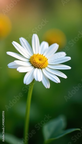 © dadtophoto, Obraz premium Single white daisy, vibrant petals, yellow center, bloom, floral