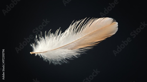 Obraz premium Single white feather isolated on a black background.
