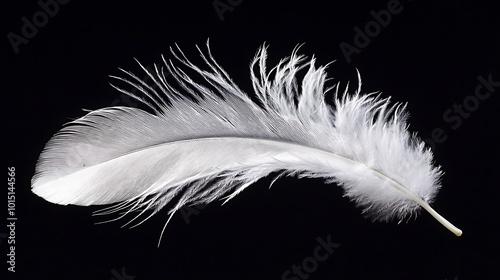 © Ibnu, Obraz premium Single White Feather Isolated on Black Background
