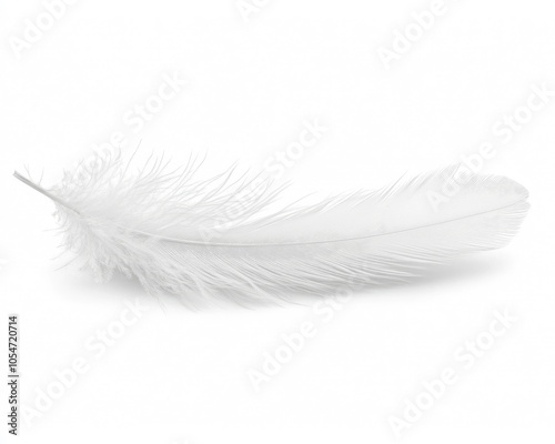 Obraz premium Single white feather isolated on white background.