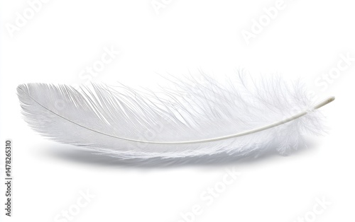 © Fude, Obraz premium Single white feather, lying on a plain white background