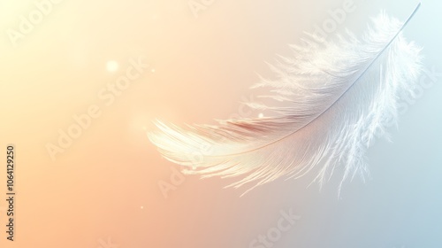 © marfuah, Obraz premium Single white feather on a soft colorful background.