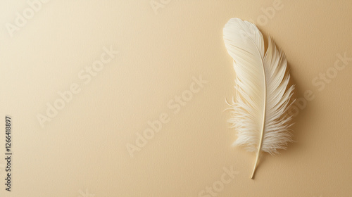 Obraz premium Single white feather on beige background -ai