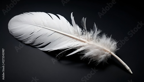 © Teeranan, Obraz premium Single White Feather on Black Background