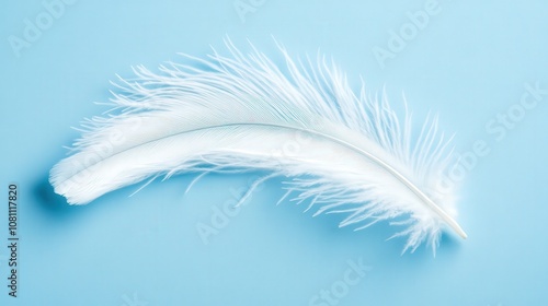 Obraz premium Single White Feather on Light Blue Background