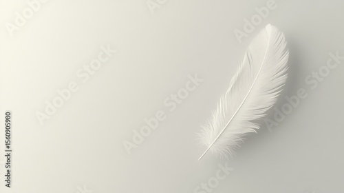 Obraz premium Single white feather on plain background