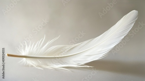 © wiwat apisithpinyo, Obraz premium Single White Feather On White Background.