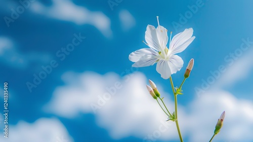 © Beer AI, Fototapeta premium Single White Flower Against a Blue Sky