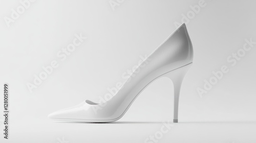 © amin11mario, Fototapeta premium Single white high-heeled pump shoe on plain background.