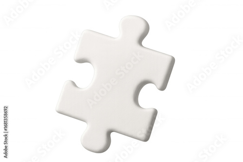 © Michael, Fototapeta premium Single white jigsaw puzzle piece floating on a transparent background, representing problem-solving, teamwork, and connection