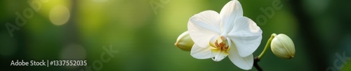 Fototapeta premium Single white orchid blossom, sharp focus, soft light, botanical, white...
