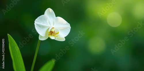 Fototapeta premium Single white orchid stem with delicate leaves, foliage, nature, leaf