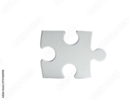 Obraz premium Single, white puzzle piece floats centered against stark black background