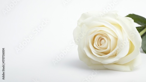 Obraz premium Single white rose on white background