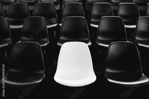 Naklejka premium Single white seat amongst black seats in empty stadium