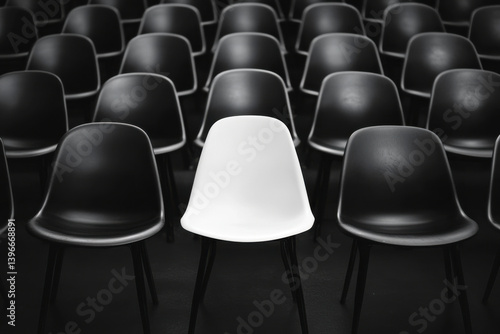 Naklejka premium Single white seat amongst black seats in empty stadium