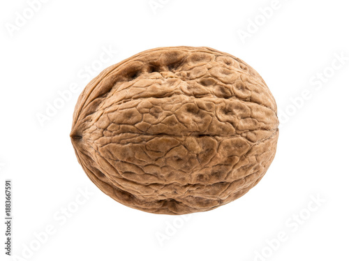 © Riverruno, Fototapeta premium Single whole walnut with textured brown shell isolated background