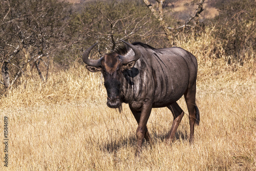 © lcswart, Obraz premium Single Wild Wildebeest in Winter South African Landscape