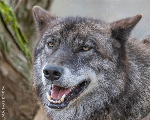© Laura Hedien, Fototapeta premium Single wolf in the Midwest US posing for the camera.