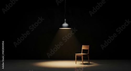 Obraz premium Single Wooden Chair Lit by Spotlight in Dark Room