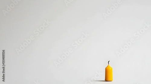 © amorn_m, Obraz premium Single Yellow Candle on a Minimalist White Background Evoking Calm and Serenity