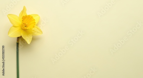 Obraz premium Single yellow daffodil flower on pale yellow background perfect for spring...