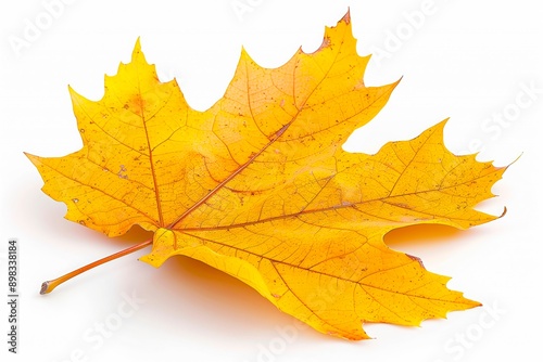 © STOCK IMAGES STALL, Obraz premium Single yellow maple leaf isolated on white background