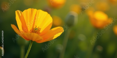© AiGallery, Obraz premium Single yellow orange California poppy flower with intricate details, sunny, delicate