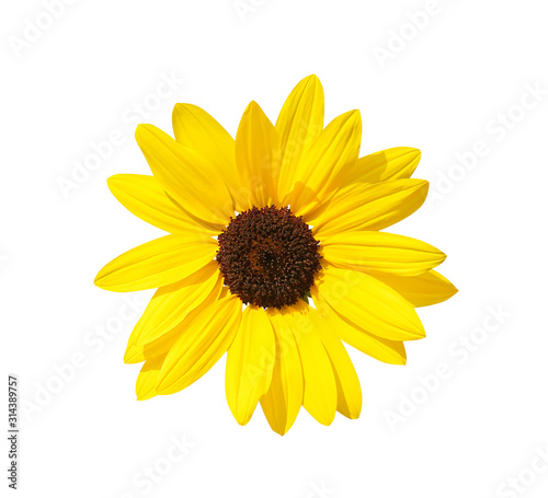 © Amphawan, Fototapeta premium Single yellow sunflowers head isolated on white background