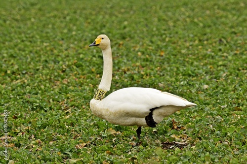 © Ronald Rampsch, Naklejka premium Singschwan mit Beringung um den Hals
