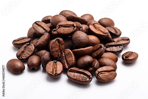 © VolumeThings, Naklejka premium Singular coffee beans separated against white background