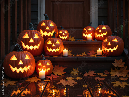 Fototapeta premium Sinister Totem Pumpkins – Halloween Stack of Shadows.